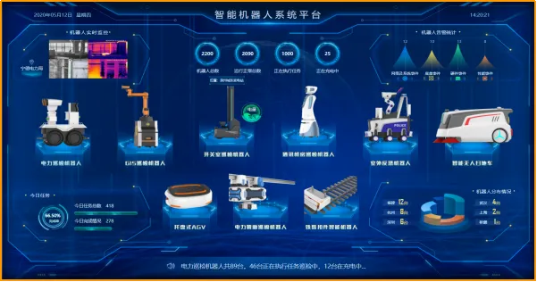 市场同类平台普遍为二维平台,团队自主研发的AI平台,应用数字孪生技术和软件控制技术,可实现三维立体展示\虚实结合,帮助产品整体解决方案提升效率,支持同时接入不同种类机器人并进行统一管理。支持平板近距离控制、Web远程控制、APP访问提供统一的Restful接口。支持并发机器人数量>200。支持SM2和SM1加密算法和RSA公钥。支持国网辅控站端物联设备接入控制。支持视觉检测、识别、定位、测量功能。