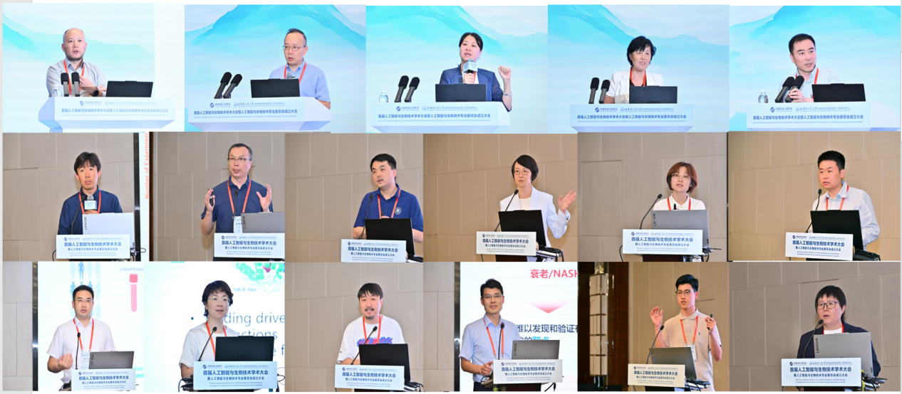 本次大会旨在展示生物学领域最新研究进展,探索人工智能与生物技术融合发展趋势,促进科研人员及产业界人士深度交流合作,为人工智能与生物技术交叉领域取得新进展新突破贡献智慧和力量。大会设立了特邀报告、专题报告、学生报告及海报展示等多个环节。17位领域内专家学者在专题报告中围绕“人工智能赋能蛋白质及药物设计”“人工智能赋能组学数字解码”“人工智能赋能合成生物学”“人工智能赋能医学影像学”领域分享了在各自研究领域的最新突破与深刻见解。我校黄志伟教授、仪器科学与工程学院李浩宇教授、深圳校区马婷教授作专题报告。