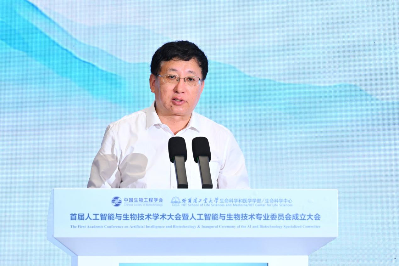 哈工大全媒体(梁英爽 肖阳/文 主办方/图)8月22日至24日,由中国生物工程学会人工智能与生物技术专业委员会主办、我校承办的首届人工智能与生物技术学术大会暨人工智能与生物技术专业委员会成立大会在哈尔滨举行。来自国内外顶尖高校、科研院所、医疗机构及领先企业的专家学者代表近400人参会,共同探讨AI与生物技术跨界融合前沿进展。中国生物工程学会副秘书长仝舟、副校长沈毅出席大会并致辞。黑龙江省科学技术协会副主席盛黎明出席大会。
