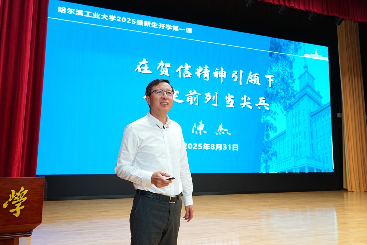 哈工大全媒体(商艳凯/文 辛然 威海校区 深圳校区/图)初秋的哈工大校园,迎来了心怀强国梦想、充满青春活力的优秀学子。8月31日,校党委书记陈杰以《在贺信精神引领下 锚定前列当尖兵》为题,面向2025级本硕博新生讲授开学第一课,为广大学子成长成才提供方向和路径指引。校党委副书记、副校长陈蕊主持开学第一课。近两万名2025级本硕博新生同上一堂课。