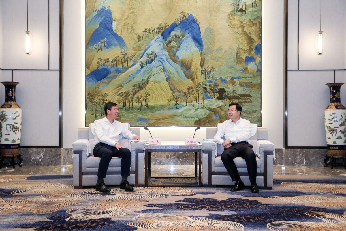 哈工大全媒体(刘培香 张玉芹/文 张玉芹/图)9月7日,校党委书记陈杰、校长韩杰才一行在威海拜会山东省委常委、常务副省长张海波。双方就深化省市校合作、推动哈工大威海校区高质量发展进行交流。山东省人民政府副秘书长牟书岭,山东省委教育工委委员、省教育厅副厅长张志刚,威海市委书记闫剑波,威海市委副书记、市长孔凡萍,威海市人民政府副市长刘奎忠,我校常务副校长孙雪,校长助理、威海校区校长谭忆秋,威海校区党委书记张淑娣等参加拜访会见。