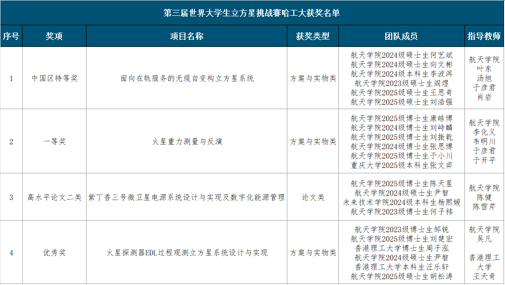 世界大学生立方星挑战赛是一项具有国际国内广泛影响力的高水平赛事,也是国际宇航联合会首次与联盟伙伴联合主办的国际赛事,自2021年起每两年举办一次。大赛以挖掘国内外学生创新思维为目的,旨在提升航天创新科研能力、理论联系实际的能力与解决工程实际问题的能力,为普及航天知识、培养创新人才作出贡献。来自全国25所高校和研究机构的60支队伍报名参赛,经初赛评审,共有15所高校和研究机构的25支队伍入围中国区总决赛。大赛共评选出中国区特等奖3项,方案与实物类一等奖4项、二等奖4项、优秀奖10项,论文类奖项4项。其中,中国区特等奖获奖团队将代表中国参加大赛国际总决赛。国际总决赛特等奖作品将有机会获得中国空间站或中国火箭免费搭载机会。
