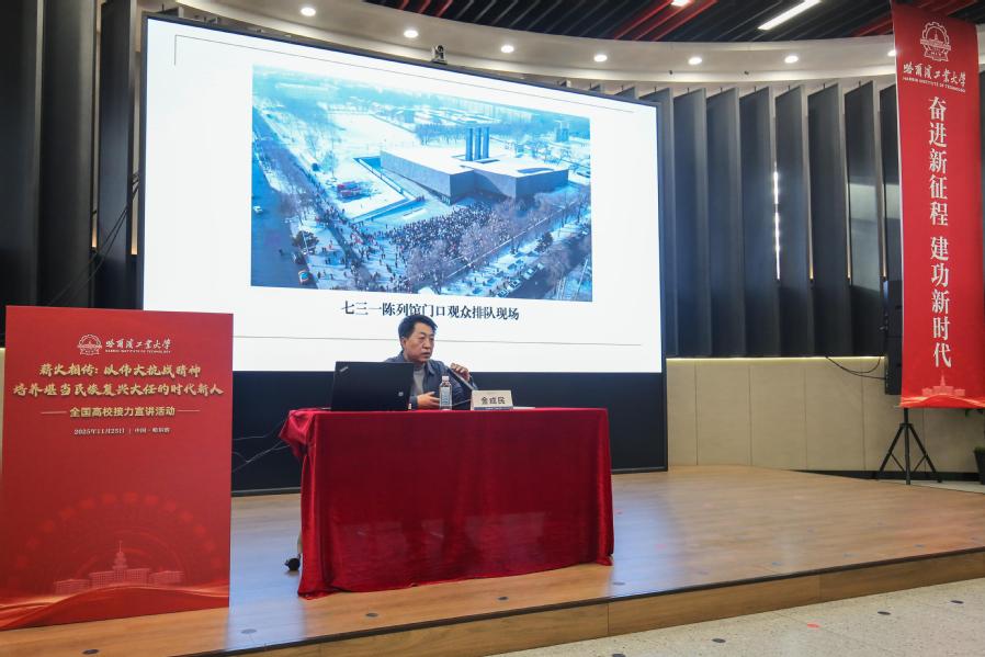 哈工大全媒体(王晨阳/文 魏嘉辰 朱炫同 马克思主义学院/图)11月25日,由全国高校青年宣讲联盟发起、我校承办的“薪火相传:以伟大抗战精神培养堪当民族复兴大任的时代新人”全国高校接力宣讲活动在校举办。侵华日军第七三一部队罪证陈列馆馆长金成民出席活动,校党委副书记、副校长陈蕊出席活动并致辞。来自清华大学、中国人民大学、南京大学、浙江大学、大连理工大学、吉林大学、东北林业大学、哈尔滨师范大学、黑龙江大学宣讲团和我校“政青春”宣讲团师生代表参加活动。