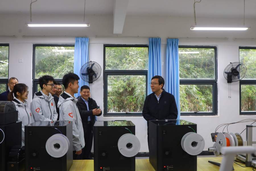在金秀民族高中,陈杰一行详细了解了学校能源科学与工程学院援建的无人机实验室和材料科学与工程学院援建的3D打印实验室建设和运行情况,希望校内捐赠共建单位不断优化完善设施,持续做好实验室发展建设。