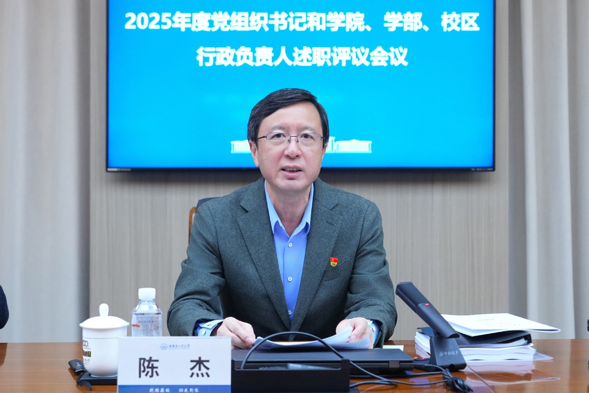 12月22日,在2025年度党组织书记和学院、学部、校区行政负责人述职评议会议上,9名基层党委书记和8名学院院长现场述职,总结成绩、盘点差距、分析问题,向学校交出年度“答卷”。校党委书记陈杰、校长韩杰才分别对现场述职的同志进行逐一点评,并对下一阶段重点工作进行部署。