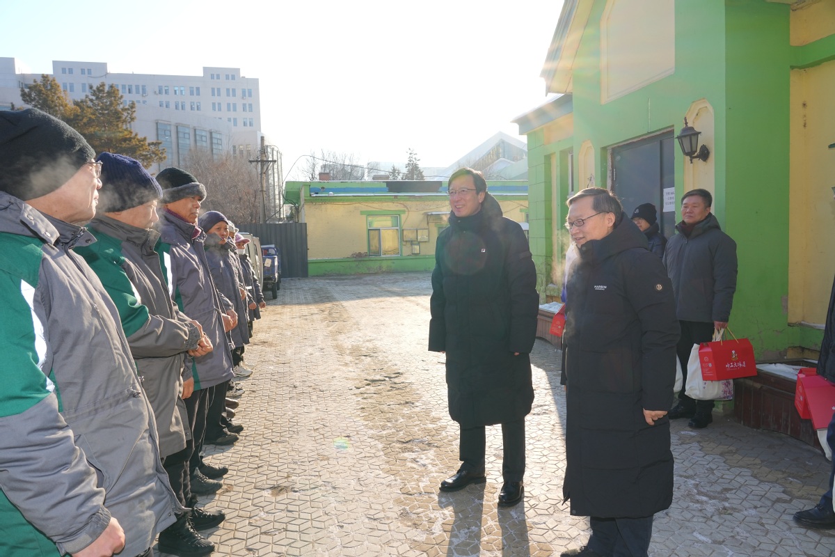 哈工大全媒体(阚思邈 张又元/文 辛然/图)新年将至,寒冬情暖。12月31日,校党委书记陈杰、校长韩杰才、常务副校长孙雪、副校长范峰走访慰问一线工作人员并送上慰问品,代表学校向参与校园管理建设、服务师生日常生活的一线工作人员表示感谢,并针对本年度为师生“办实事”落实情况进行实地调研。
