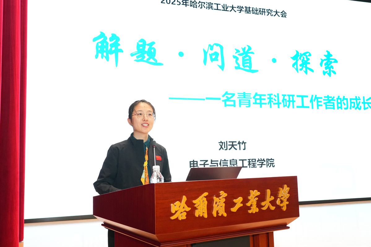 “在基础研究中追问原理是哈工大赋予我的科研基因,我的成长源于个人自主探索与学校战略谋划的持续共振……”电子与信息工程学院研究员刘天竹在发言中分享了自己从被系统塑造的“解题者”、经历转型的“问道者”到成长为被同行认可的“探索者”的基础科研之路。