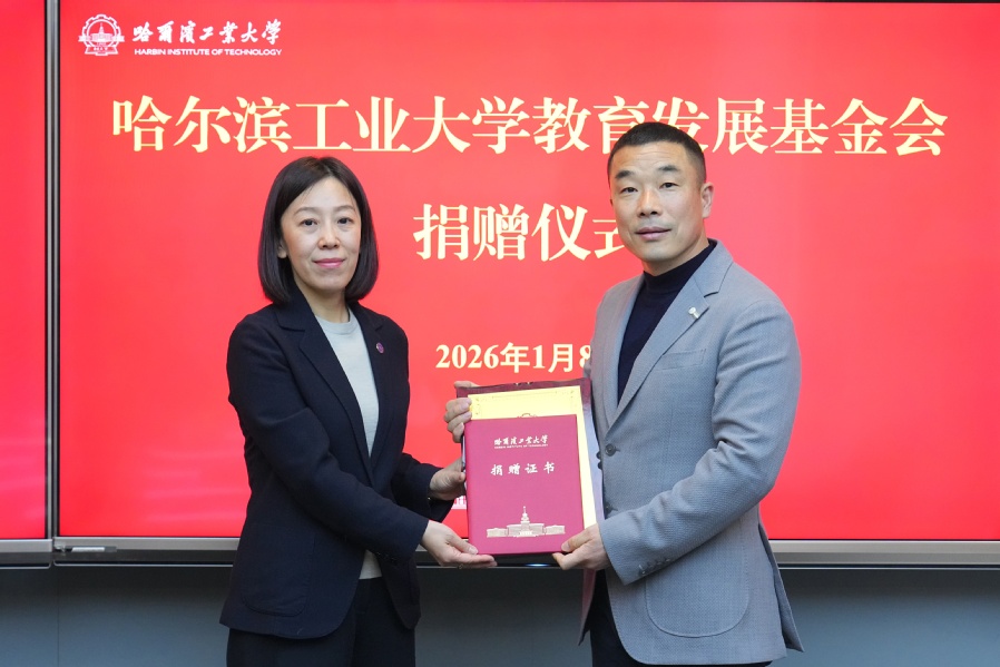 哈工大全媒体(王晨阳/文 辛然/图)1月8日,哈工大教育发展基金会捐赠仪式举行。黑龙江中粟农业科技有限公司(简称“中粟农业”)向基金会捐赠,用于支持化工与化学学院发展建设。校党委副书记、副校长陈蕊为中粟农业颁发教育贡献奖奖牌和捐赠证书。