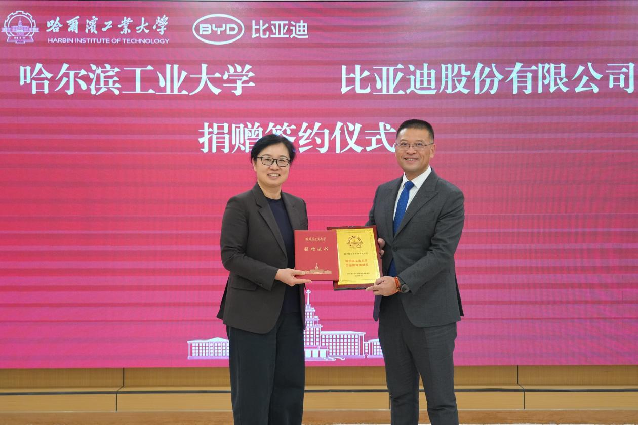 王渤介绍了比亚迪当前发展形势及全球化进程情况。他表示,比亚迪与哈工大在寒地电化学储能等领域此前有着良好合作基础,希望以此次捐赠签约为契机,推动双方在技术研发、成果转化等方面深度协同联动,共同探索产学研融合与国际化人才培养新模式,助力新能源产业创新发展。