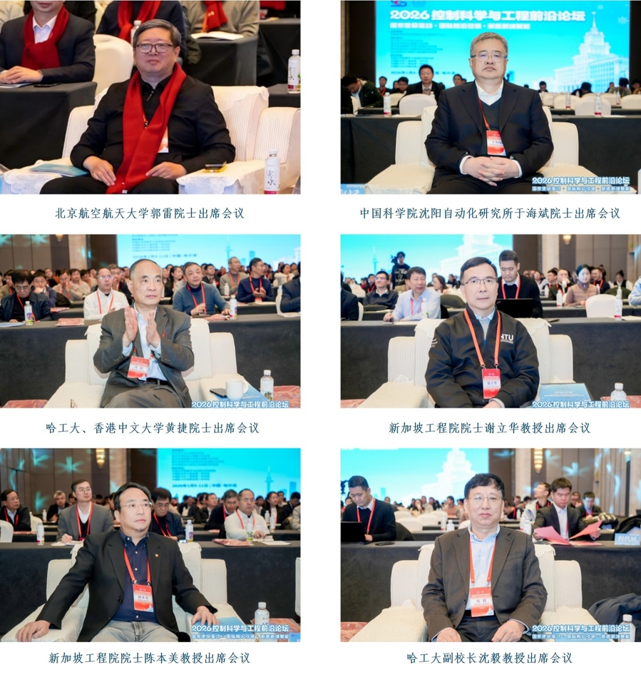 哈工大全媒体(王晨阳 /文 会务组 /图)1月9日至11日,由中国自动化学会控制理论专业委员会(TCCT)主办、我校承办的2026控制科学与工程前沿论坛(特别版)(简称“论坛”)在哈尔滨举行。论坛以“国家使命驱动·国际前沿引领·新质新域赋能”为主题,12位院士、10余位企业总师、100余位国家级领军人才和青年人才以及中国自动化学会、我校师生代表等360余人参加论坛。