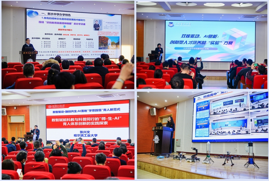 会上,本科生院负责人介绍了学校在课程体系建设、实践创新平台搭建、个性化培养等方面的人才培养特色。本科生招生办负责人解读了学校招生政策、培养模式及特色项目等情况。河北衡水中学党委书记郗会锁、大庆实验中学党委书记孙梅作专题报告,以中学视角分享了AI时代大中衔接、AI赋能创新人才培养方面的创新实践与深刻思考。化工与化学学院张兴文教授、航天学院赵婕教授在报告中交流了哈工大在数智赋能科教与科普、科技赋能高中创新人才培养方面的相关探索与特色做法。与会代表现场观摩了哈工大学子自主研发设计的无人机、低空飞行器等课程实践成果演示。