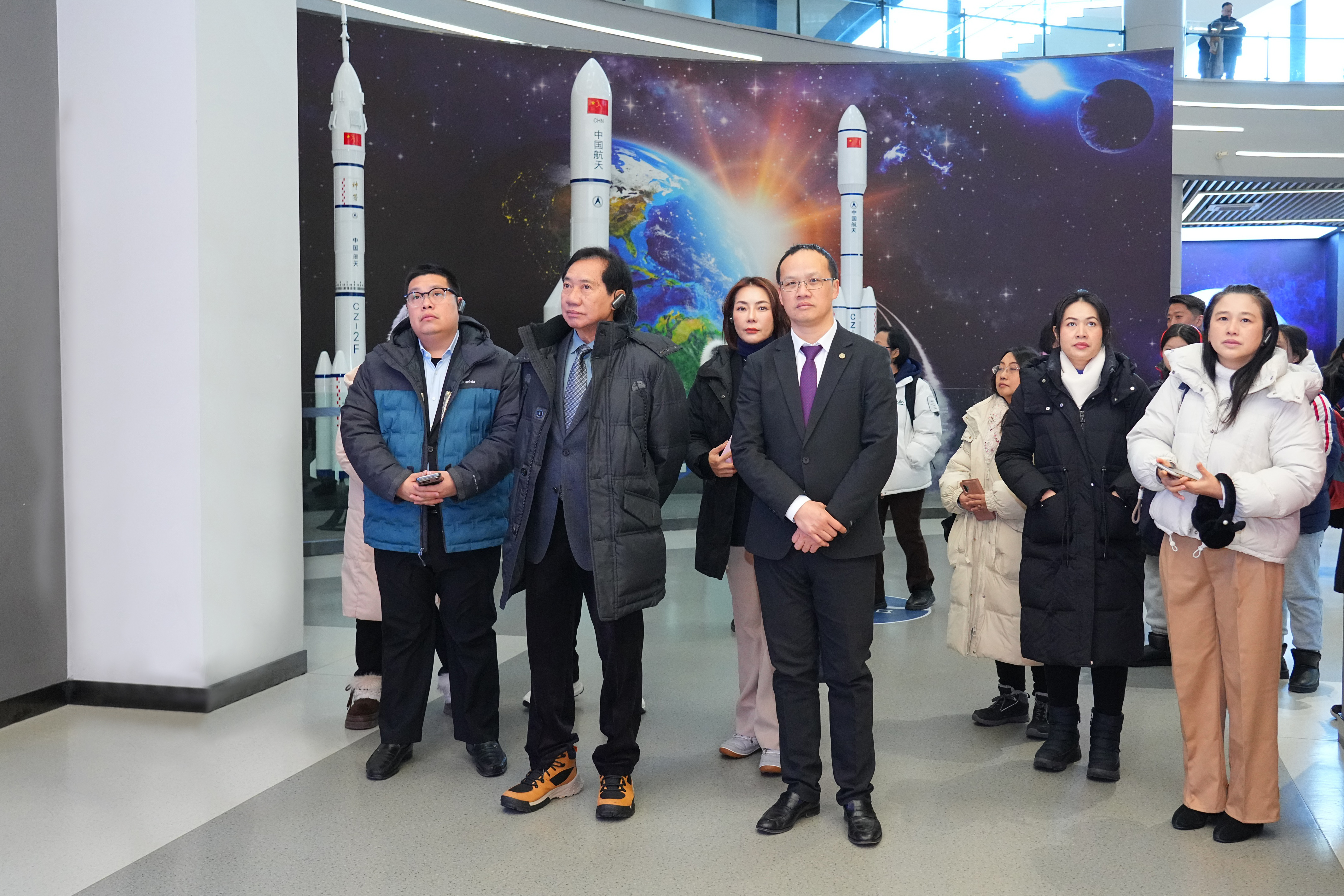 在校期间,颇钦·蓬拉军一行调研了哈工大发展历程展和办学成就展、哈工大航天馆。