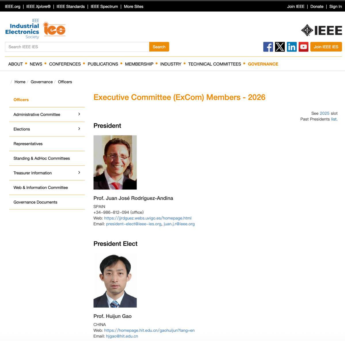 哈工大全媒体(张又元 李湛 文/图)近日,美国电气与电子工程师协会(IEEE)工业电子学会在葡萄牙里斯本召开学会执行委员会议(ExCom Meeting)。我校航天学院高会军教授作为新当选的学会候任主席(President Elect)参加会议并作工作报告。他是该学会自1951年创会以来第一位当选主席的中国大陆学者。