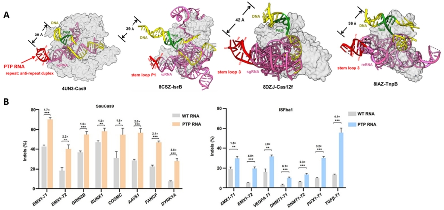 图2A:CRISPR和TnpB系统的PTP RNA