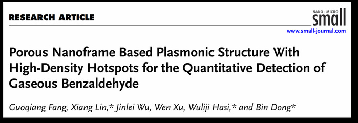 (方国强/文图)近日,哈工大航天学院/郑州研究院光子传感研究团队与大连民族大学相关团队合作,设计并制备了一种三维Au@Ag-Au多孔纳米框架(PPF)等离子体结构,并应用于气体中苯甲醛的定量检测。三维Au@Ag-Au多孔纳米框架(PPF)等离子体结构不仅有助于形成更丰富的局部电场分布模式,且独特的三维形态和开放的内部空间允许分析物的高效运输,从而增加了在气相中检测到低浓度分子的可能性。该研究工作以《应用多孔纳米框架的高密度热点等离子体结构进行气态苯甲醛的定量检测》(Porous Nanoframe Based Plasmonic Structure With High-Density Hotspots for the Quantitative Detection of Gaseous Benzaldehyde)为题发表在国际纳米材料权威期刊《Small》(影响因子:13)上,以下为该论文详细情况: