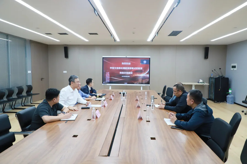 会上,刘铭辉对刘永革一行来院回访表示欢迎。他指出,研究院依托学校学科底蕴,在人工智能、自然语言处理等领域积累了技术优势,与实验室对甲骨文数字化、活化利用的需求高度契合,期待双方加快推进方案制定与资源整合,在甲骨文文献深度数字化、人工智能大模型优化以及文化品牌国际推广等方面开展紧密深入的合作,以数字科技焕活汉字源头,有效赋能甲骨文保护、研究、传承和活化。