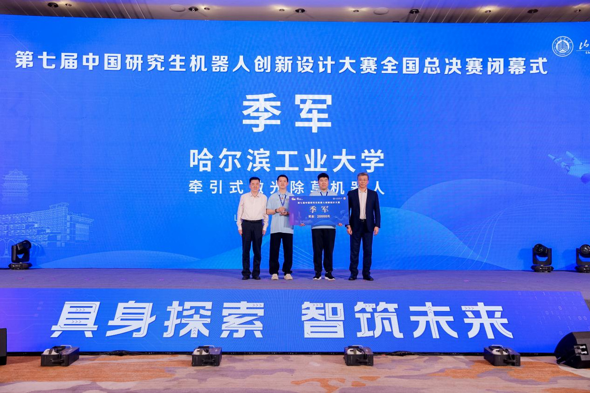 哈工大全媒体(商艳凯 岳亚美/文 研究生院/图)近日,第七届中国研究生机器人创新设计大赛全国总决赛在山东济南举行。我校共有28支队伍进入总决赛,数量居全国高校第一;参赛项目共获得一等奖6项、二等奖9项及三等奖13项,一、二等奖获奖数量均居全国高校第一,其中“牵引式激光除草机器人”项目荣获季军;我校连续7年荣获“优秀组织单位”称号,10名教师获评“优秀指导教师”。副校长沈毅出席全国总决赛开幕式并代表大赛组委会秘书处致辞。