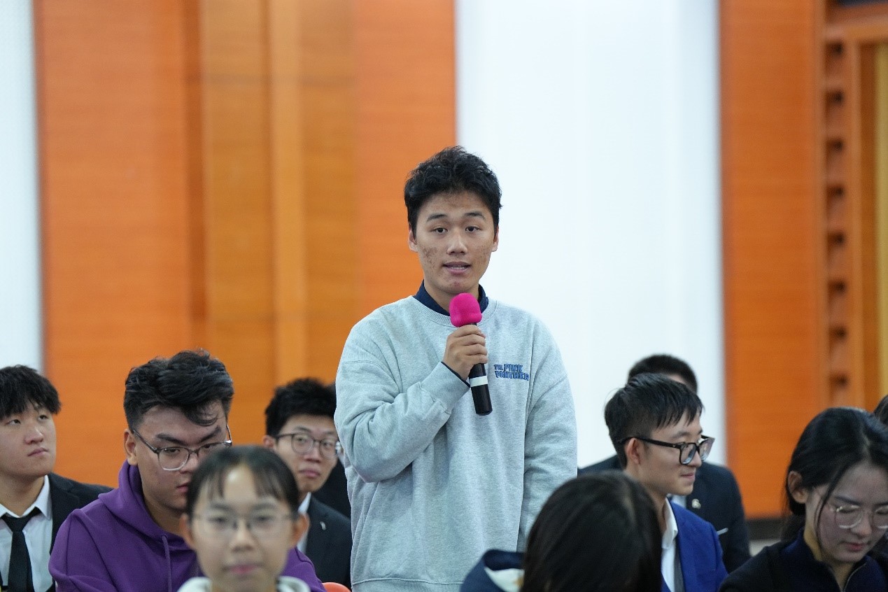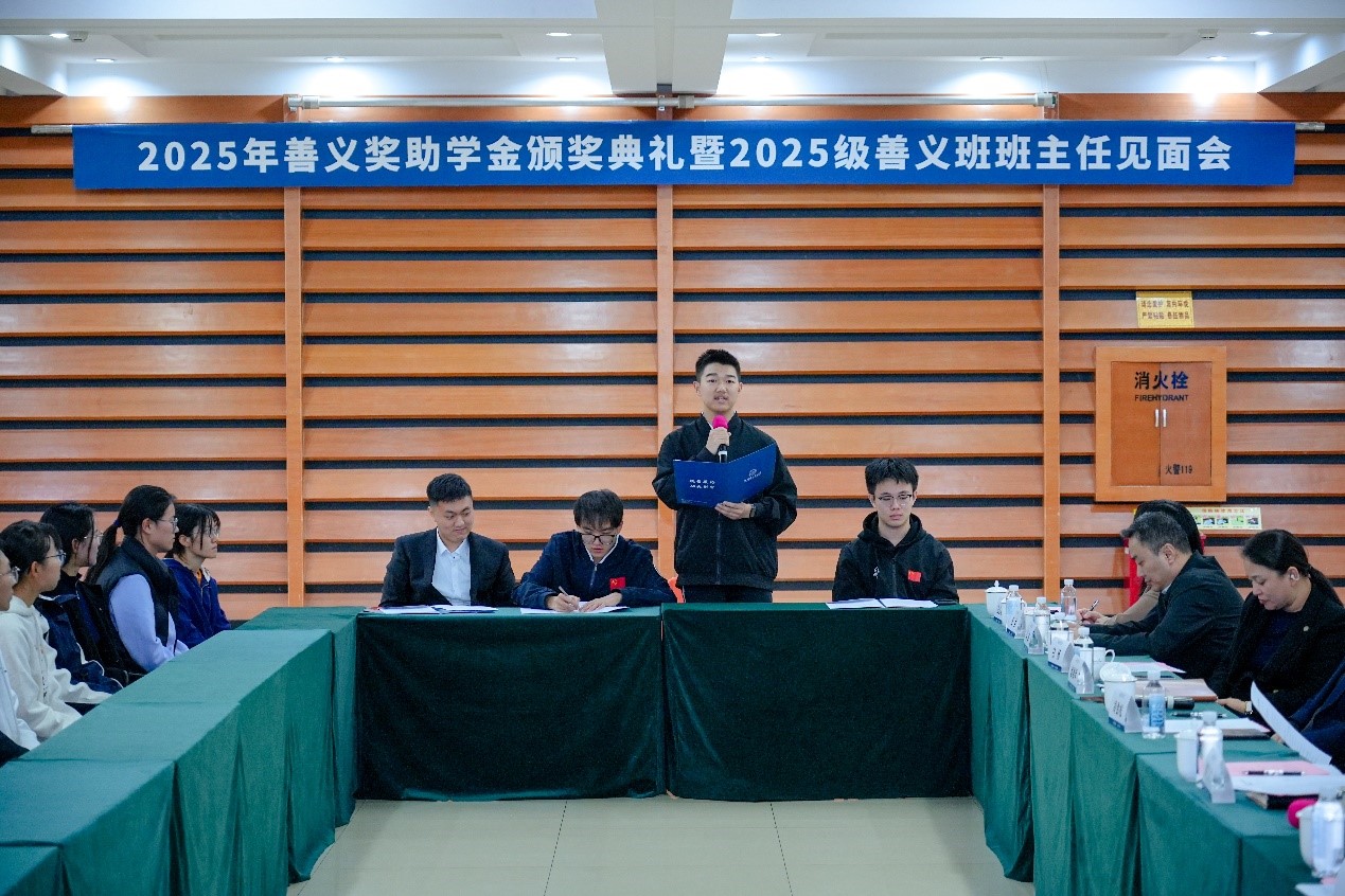 随后,2024级善义班张朴正、王一鸣,2023级善义班赵峻熙,2022级善义班崔楚昊4名学生代表依次发言,分享了入学以来在学习生活、班级建设、科技创新等方面的收获和感悟,希望帮助学弟学妹们找到未来努力的方向。