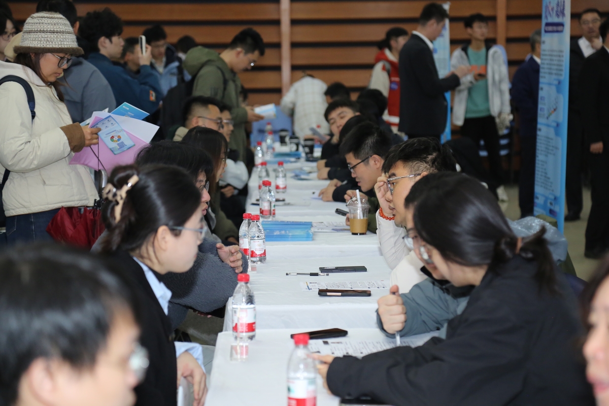 招聘会现场,来自中交集团下属35家单位的招聘代表与学子们深入交流,学子们踊跃投递简历,现场气氛热烈。