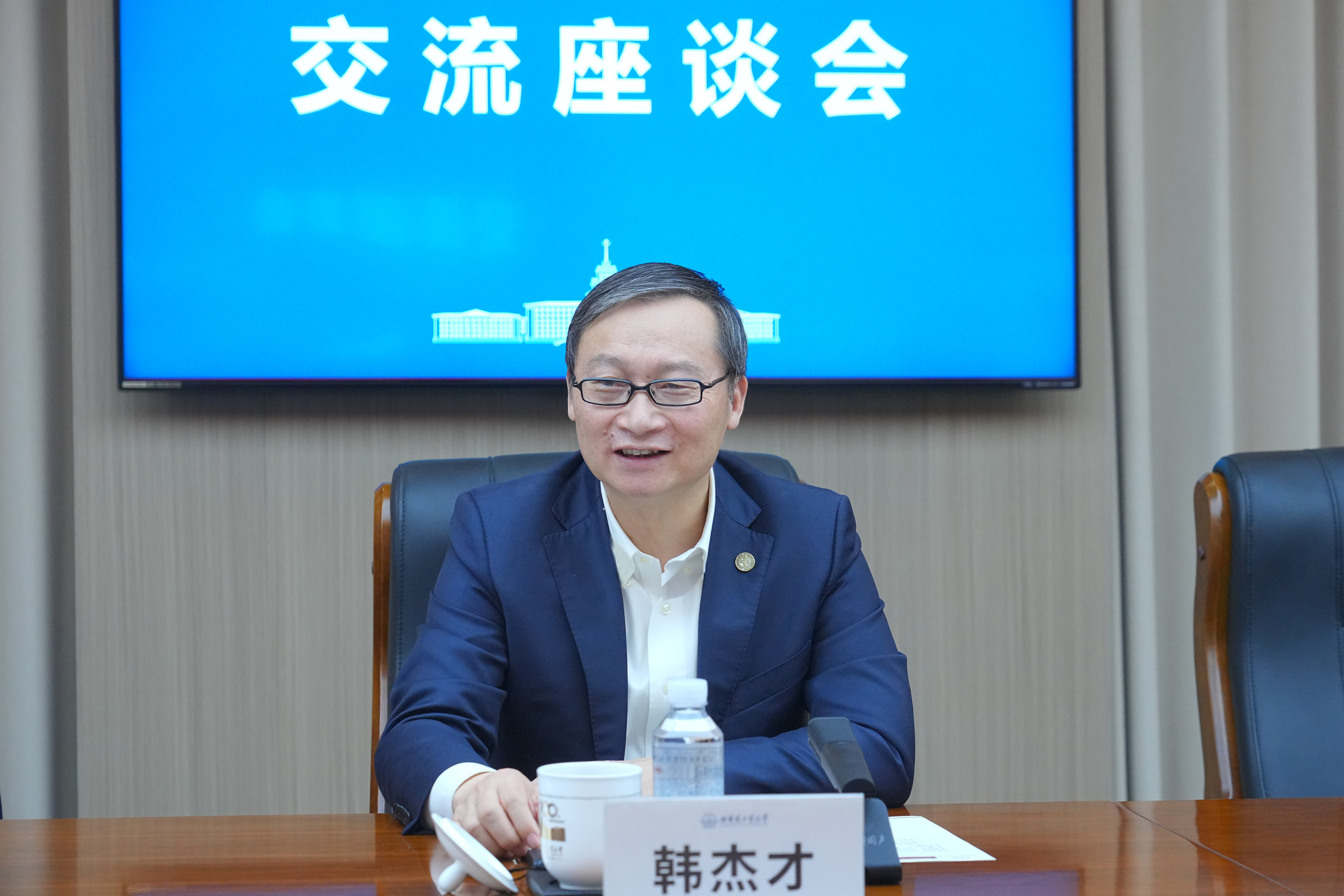 哈工大全媒体(梁英爽/文 辛然/图)11月4日,深圳航天科技创新研究院(以下简称“深研院”)党委书记、院长臧伟一行来校推进合作。校长韩杰才出席座谈会。常务副校长孙雪主持座谈会,副校长刘挺、校长助理高海波出席座谈会。