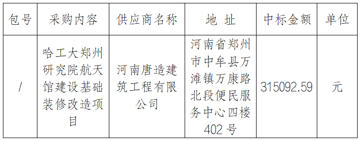 在中国招标投标公共服务平台、哈工大郑州研究院官网上发布,期限为1个工作日。