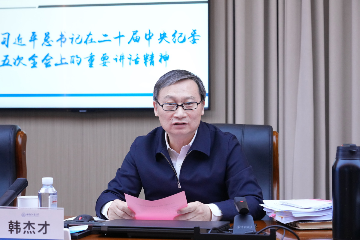 韩杰才表示,习近平总书记的重要讲话为深入推进全面从严治党和反腐败斗争提供了根本遵循,为我们蹄疾步稳走好中国特色、哈工大规格的世界一流大学前列跃升之路指明了前进方向。要深刻把握“党的自我革命重在治权”的重要意义,加快建设与世界一流大学相适应的治理体系,以高水平的制度设计推动学校在“法治”轨道上全面提速、驶向前列。要深刻把握“反腐败是一场输不起也决不能输的重大斗争”的重要意义,时刻用党规党纪校正思想和行动,以“规格严格,功夫到家”的校训精神,倍加珍惜、持续巩固好学校的良好政治生态,步稳蹄疾走出一条特色发展之路、扛旗夺标之路。要深刻把握“认真探索贯彻落实党中央重大决策部署的有效方法和途径”的重要要求,在遵循规律、守正创新中打破惯性思维、摆脱路径依赖,大胆探索、激情进取,奋发作为、追求卓越,以哈工大特色的“有效方法和途径”,不断开创学校高质量发展新局面。