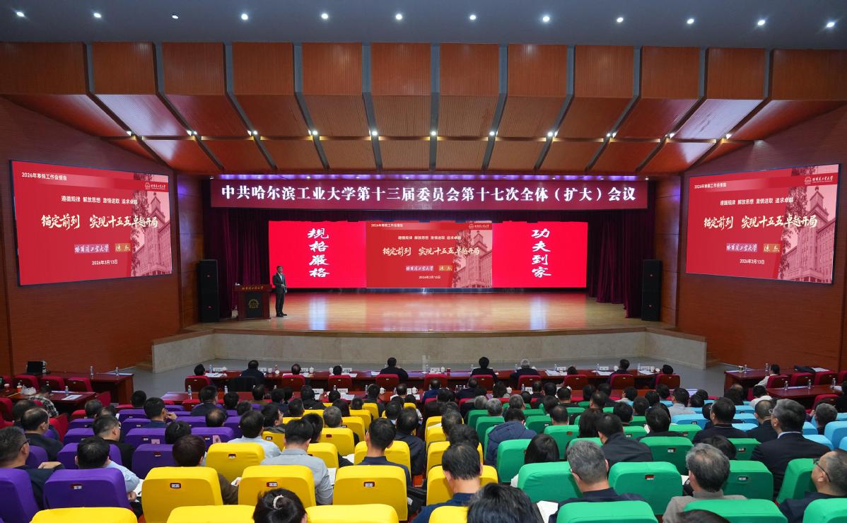 哈工大全媒体(刘培香/文 辛然/图)3月13日至14日,中共哈尔滨工业大学第十三届委员会第十七次全体(扩大)会议召开。会议主题是“全面贯彻落实党的二十届四中全会精神和全国两会精神,深入实施人才强校战略,持续优化调整师资队伍结构,筑牢新时代哈工大‘八百壮士’人才高地,有力推动学校实现世界一流大学前列目标”。