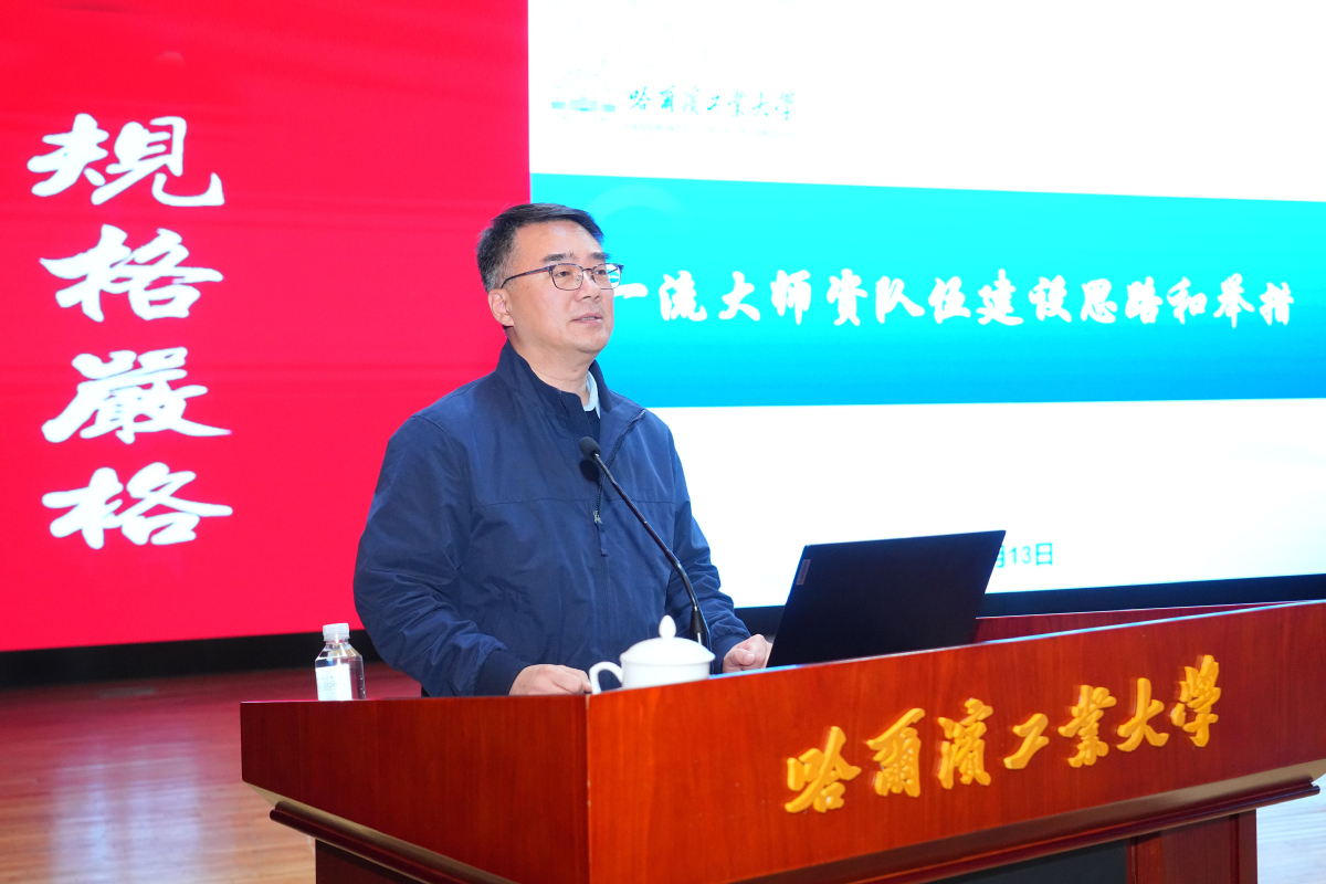 刘俭以《一流大师资队伍建设的思路和举措》为题作专题报告,紧紧围绕学校发展大局,系统梳理了当前人才队伍建设的现状、成效与短板,对下一步加强队伍建设提出具体思路、举措和目标。