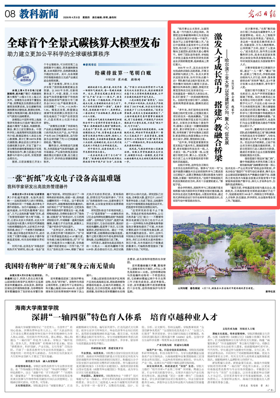 哈工大全媒体(李双余/文)4月9日,《光明日报》刊发《激发人才成长活力 搭建产教融合桥梁——哈尔滨工业大学以党建把方向、聚人心、促发展》,报道近年来学校党委紧紧抓住党支部这个基本单元,围绕国家需要,将支部建在科技攻关一线、人才成长一线、产业发展一线,以党建引领把方向、聚人心、促发展。