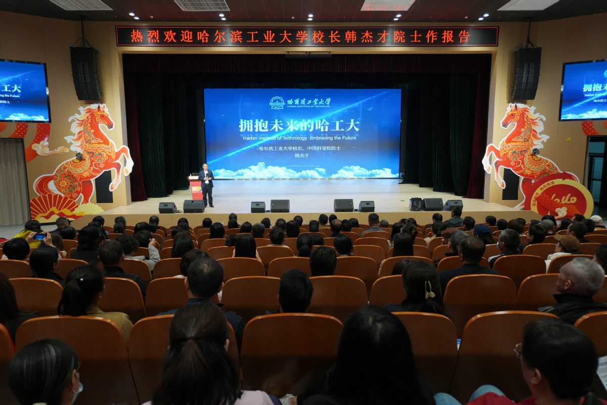 在西安高新第一中学,韩杰才与学校领导围绕共担新时代育人使命、促进优质教育资源共建共享、探索大中衔接拔尖创新人才培养新模式等方面进行了深入交流。韩杰才以《拥抱未来的哈工大》为题作报告,立足国家“十五五”时期的战略布局,介绍了学校紧密对接国家战略优化调整学科专业、着力培养拔尖创新人才的相关举措,勉励学子胸怀家国、志存高远,在更高的发展平台上练就过硬本领,在积极投身强国建设中实现人生价值。