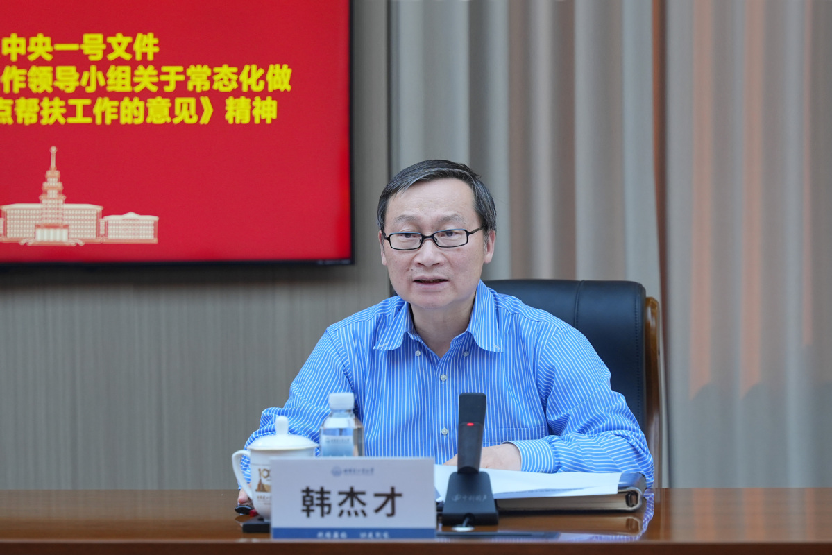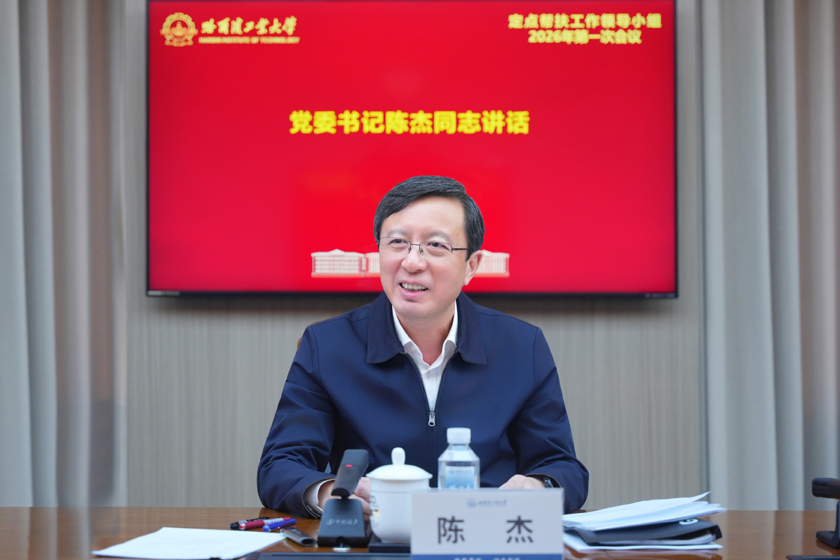陈杰对2026年定点帮扶工作作出部署。一是提高政治站位,深刻领会常态化帮扶的重大意义,筑牢思想共识。站在服务国家战略全局高度,坚守政治忠诚,彰显使命价值,大力弘扬新时代哈工大“尖兵”文化,把帮扶一线作为立德树人的“大课堂”、科研转化的“试验田”、干部历练的“大熔炉”,推动学校优势资源与帮扶地需求深度契合,让帮扶成果更具成效、更暖民心。二是聚焦核心任务,紧扣年度要点狠抓落实,提升帮扶质效。紧紧围绕党代会部署,落实寒假工作会和年度工作要点要求,对标2026年定点帮扶工作任务,统筹推进帮扶工作,深学细悟“千万工程”经验,因地制宜升级“五大帮扶工程”,做优传统品牌项目,坚持科技赋能,强化联农带农,推进“人工智能+”赋能特色产业延链补链强链,发挥学科优势,以项目为牵引,补齐民生短板。三是强化组织保障,压实各级责任,凝聚攻坚合力。将帮扶工作摆在学校服务区域发展的突出位置,深度挖掘学校“一校三区”办学格局和地方研究院布局优势,进一步强化资源统筹、深化协同联动,健全全程动态监管机制,加大对一线帮扶干部的关心支持与保障激励,做好帮扶工作宣传总结,深度挖掘一线典型事迹,生动讲好哈工大真情帮扶的暖心故事。